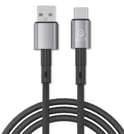 LOSTECH LS-NB05UC cavo rivestito in filo nylon intrecciato, connettori in lega di zinco, potenza 100W, uscita 6.0A, USB / TYPE-C, 1 m, NERO