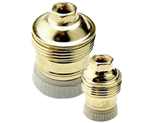 FAI-1035 (E27 )/ 1036 (E14) portalampade in metallo con ghiera in porcellana, morsetti a vite per cavi rigidi e flessibili da 0,5÷2,5 mm², foro filettato M10x1